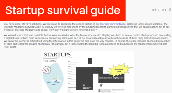 您有创意...我们有解决方案。无论您处于哪个创业阶段,DigiKey 都能帮您将概念变为产品。DigiKey 创立初期是一家基于硬件的初创公司,为业余线电爱好者设计和制作数字键控器。我们为自己的传承而感到无比自豪,多年来我们已经帮助数十万家初创企业将其产品推向市场。我们一直持续进行学习。学习已融入我们的血液之中。在这个页面,我们为您准备了最优质的资源,帮助您将产品成功推向市场。从我们的初创企业生存指南到产品路线图和创客仪表盘,之所以打造这些工具是因为我们懂得创业之路的艰难,也深知值得为之奋斗和付出。