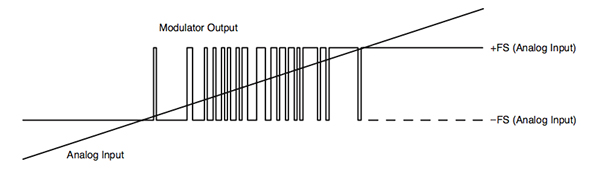图 2:典型三角积分型比特流对模拟输入电平变化的响应。