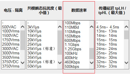 我们会发现,有些磁耦可以以高达100Mbps速度的脉冲电流通过隔离屏障,磁耦的数据传输速率特性可以在DigiKey网页內找到。