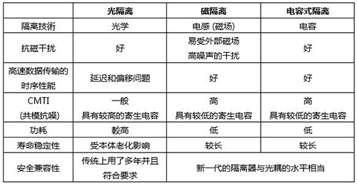 表1,三种主流隔离技术的比较