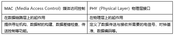 通过下表,我们先了解一下什么是MAC和PHY,以及他们之间的区别。