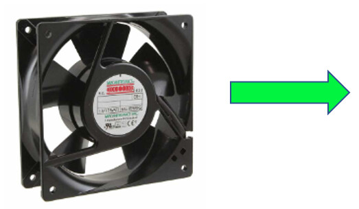 反向气流风扇将空气拉向标签,并将空气吹向背面: