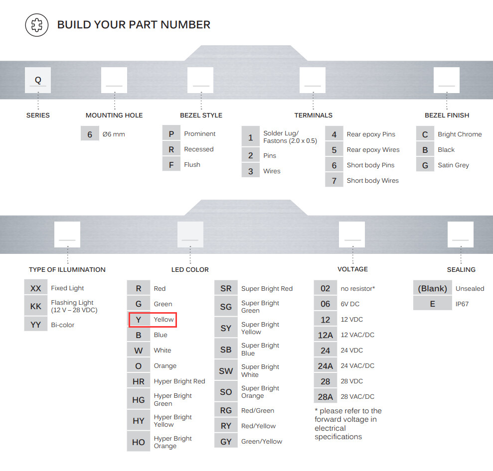 根据数据手册,Q6F3CXXY24E是一个黄色的LED灯。如果是您从Digi-Key购买,售后问题,您可以用邮件的方式联系您采购时的销售。