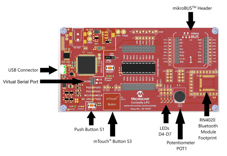 Microchip CURIOSITY LPC开发板(型号:DM164137)是一款高集成度的 8 位 PIC MCU 开发平台,专为快速原型设计和学习打造。以下是其核心硬件组成及功能解析,结合官方文档、用户反馈及扩展应用场景: