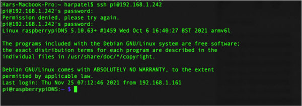 b. Mac: open a terminal and enter username (default: pi) with IP address
