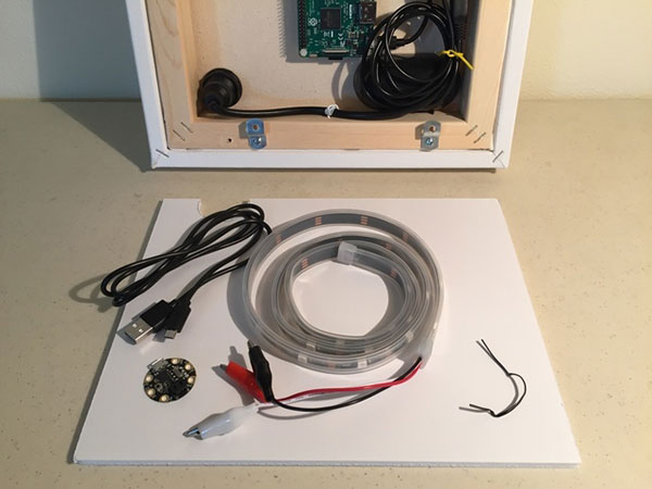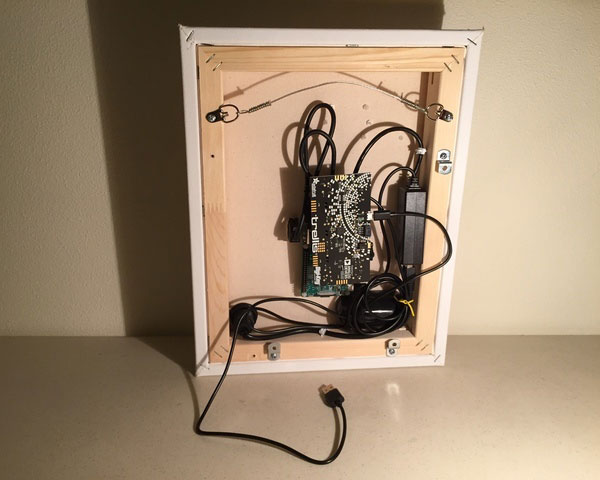 At the end of the last section, we had a blank canvas that can hang on the wall, but with no electronics. The goal for this section is to end up with a canvas that is still mostly blank - allowing for an infinity of further design possibilities - but it will have a running Raspberry Pi system behind the canvas, with one wire bringing in both power and Ethernet.