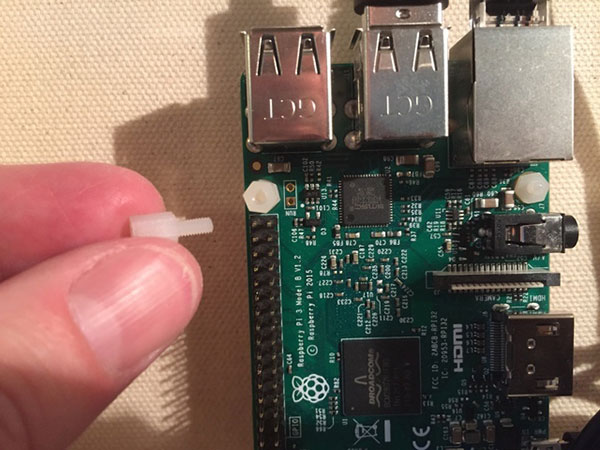 In these pictures, I'm starting to attach a bunch of nylon screw parts to the Circuit Playground Express.