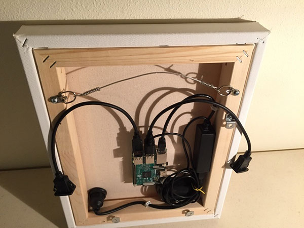 Now you have a blank canvas that hangs on the wall. Proceed to the next section to learn how to place a Raspberry Pi and other computer parts into the canvas assembly.