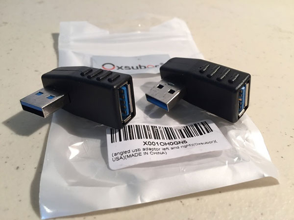 I am going to use one of the "angled USB adapters" shown here - whichever one happens to angle the way I want.