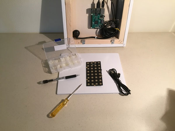 The parts above will be placed inside the canvas (except for the USB microSD card reader/writer, which is a tool used for programming the microSD memory card). There are some additional parts you will need, to bring power and Ethernet into the canvas.