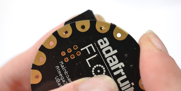 Fold the extra vinyl hammock over the FLORA or Circuit Playground Express circuit and binder-clip in place. Squeeze the metal tabs to remove them, leaving the clip with a lower profile.