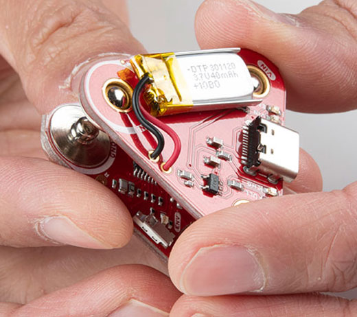 The top side of the board is populated with the circuit and male snap connectors. The bottom of the ‎board has the female snap connectors.‎