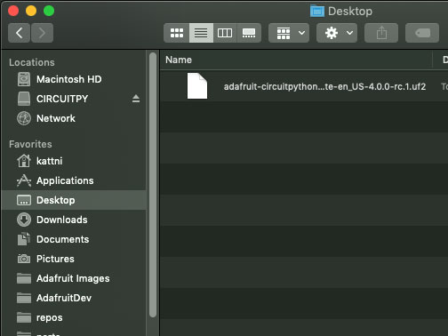 Drag the adafruit_circuitpython_etc.uf2 file to METROM4BOOT.