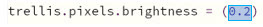 - pixels.brightness - The overall brightness of the pixels. Must be a number between 0 and 1, which represents a percentage, i.e. 0.3 is 30%.