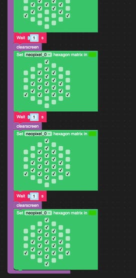 {"components":[],"type":"PICO","versions":"Beta","units":[{"id":"Bra6Ux5oRlrqd+ei","createTime":1638434050106,"count":"37","type":"neopixel","name":"neopixel_0","port":"A","default":["A","Custom"],"user_port":["21","22"],"icon":"rgb_led.png","new_port":"A","new_default":["A","Custom"]}],"hats":[],"blockly":"<variables><variable id=\"n$bhc#~xA[Hsw`Xd:y~,\">i</variable><variable id=\"F~9Rg{!zXA+ScruVTbr;\">R</variable><variable id=\"t;K/qZMxh);syR4S6aJE\">G</variable><variable id=\";.GJ5YIR+_[dBk?T)U6-\">B</variable></variables><block type=\"basic_on_setup\" id=\"setup_block\" deletable=\"false\" x=\"50\" y=\"-950\"><next><block type=\"basic_on_loop\" id=\"Lm{e9zc3+N9AMzy([VI*\"><statement name=\"LOOP\"><block type=\"procedures_callnoreturn\" id=\"|?)dYM4cU.^Yx%!AKgP_\"><mutation name=\"christhmas_tree\"></mutation><next><block type=\"timer_delay\" id=\"`.Nl-18IiGKI-$bCF$O|\"><value name=\"DELAY\"><shadow type=\"math_number\" id=\"l7:OcMJ:7HgC2,N,osD}\"><field name=\"NUM\">1</field></shadow></value><next><block type=\"procedures_callnoreturn\" id=\"1HBO_Om?UUgQb~ZfDaW3\"><mutation name=\"flash\"></mutation><next><block type=\"timer_delay\" id=\"o#Y2vu1xKm~a=dNkBFDJ\"><value name=\"DELAY\"><shadow type=\"math_number\" id=\"+~.6]Xzpdd(YdG_nic:0\"><field name=\"NUM\">1</field></shadow></value><next><block type=\"procedures_callnoreturn\" id=\"%uk*n{x,~fkzM@Nt^y,r\"><mutation name=\"flash random\"></mutation><next><block type=\"timer_delay\" id=\"2y}3+6g.PQ;j[U8FhS^V\"><value name=\"DELAY\"><shadow type=\"math_number\" id=\"1x5$Oq=D/%v1{{QQvL6I\"><field name=\"NUM\">1</field></shadow></value><next><block type=\"procedures_callnoreturn\" id=\"ahYG`og%3#:KL?+*+izT\"><mutation name=\"fadeout\"></mutation><next><block type=\"timer_delay\" id=\"::E%!eQ}YCG$5}d.;Twc\"><value name=\"DELAY\"><shadow type=\"math_number\" id=\"E43Pa:|^dJg}@A#-rTD_\"><field name=\"NUM\">1</field></shadow></value></block></next></block></next></block></next></block></next></block></next></block></next></block></next></block></statement></block></next></block><block type=\"procedures_defnoreturn\" id=\"@d@{6OM;J+FUL#RT@W/a\" x=\"230\" y=\"-950\"><field name=\"NAME\">flash random</field><comment pinned=\"false\" h=\"80\" w=\"160\">Describe this function...</comment><statement name=\"STACK\"><block type=\"controls_repeat\" id=\"=@S:PA$b}�IHNR}Ie/\"><field name=\"TIMES\">10</field><statement name=\"DO\"><block type=\"variables_set\" id=\"`$cLNZJ?b|OQ-`Je7f~N\"><field name=\"VAR\" id=\"F~9Rg{!zXA+ScruVTbr;\">R</field><value name=\"VALUE\"><block type=\"math_random_int\" id=\"H6UOb*u^/No]ps}eFv$+\"><value name=\"FROM\"><block type=\"math_number\" id=\"a3;Q79et1mXX!6O3`ssW\"><field name=\"NUM\">0</field></block></value><value name=\"TO\"><block type=\"math_number\" id=\"%Cpfg0J*b0uL37M/XM.r\"><field name=\"NUM\">255</field></block></value></block></value><next><block type=\"variables_set\" id=\"CFn,0)I6WkSpwXQ+]f5;\"><field name=\"VAR\" id=\"t;K/qZMxh);syR4S6aJE\">G</field><value name=\"VALUE\"><block type=\"math_random_int\" id=\"0DRI}XJtwtdfTt1_U?3=\"><value name=\"FROM\"><block type=\"math_number\" id=\"fjI{=}]W8@R~R-OLmgDS\"><field name=\"NUM\">0</field></block></value><value name=\"TO\"><block type=\"math_number\" id=\"QIwP90u3KGwQ5_t@E�\"><field name=\"NUM\">255</field></block></value></block></value><next><block type=\"variables_set\" id=\"C:HQ0fZ}|9c+X4p,1^6Q\"><field name=\"VAR\" id=\";.GJ5YIR+_[dBk?T)U6-\">B</field><value name=\"VALUE\"><block type=\"math_random_int\" id=\"hg=|DaD22q/tl6;zUA%o\"><value name=\"FROM\"><block type=\"math_number\" id=\"g[5Q2S4y@4(}i;401kfS\"><field name=\"NUM\">0</field></block></value><value name=\"TO\"><block type=\"math_number\" id=\"0,qvZ06z4)C6jeQ{;p.O\"><field name=\"NUM\">255</field></block></value></block></value><next><block type=\"rgb_multi_set_hexagon_matrix_rgb\" id=\"7c[uw^nKpa)gOqnIo`XV\"><field name=\"VARNAME\">neopixel_0</field><field name=\"MAP_0_0\">FALSE</field><field name=\"MAP_0_1\">FALSE</field><field name=\"MAP_0_2\">FALSE</field><field name=\"MAP_0_3\">TRUE</field><field name=\"MAP_1_0\">FALSE</field><field name=\"MAP_1_1\">FALSE</field><field name=\"MAP_1_2\">TRUE</field><field name=\"MAP_1_3\">FALSE</field><field name=\"MAP_1_4\">FALSE</field><field name=\"MAP_2_0\">FALSE</field><field name=\"MAP_2_1\">TRUE</field><field name=\"MAP_2_2\">FALSE</field><field name=\"MAP_2_3\">FALSE</field><field name=\"MAP_2_4\">FALSE</field><field name=\"MAP_2_5\">FALSE</field><field name=\"MAP_3_0\">TRUE</field><field name=\"MAP_3_1\">FALSE</field><field name=\"MAP_3_2\">FALSE</field><field name=\"MAP_3_3\">TRUE</field><field name=\"MAP_3_4\">FALSE</field><field name=\"MAP_3_5\">TRUE</field><field name=\"MAP_3_6\">FALSE</field><field name=\"MAP_4_0\">FALSE</field><field name=\"MAP_4_1\">TRUE</field><field name=\"MAP_4_2\">FALSE</field><field name=\"MAP_4_3\">FALSE</field><field name=\"MAP_4_4\">FALSE</field><field name=\"MAP_4_5\">FALSE</field><field name=\"MAP_5_0\">FALSE</field><field name=\"MAP_5_1\">FALSE</field><field name=\"MAP_5_2\">TRUE</field><field name=\"MAP_5_3\">FALSE</field><field name=\"MAP_5_4\">FALSE</field><field name=\"MAP_6_0\">FALSE</field><field name=\"MAP_6_1\">FALSE</field><field name=\"MAP_6_2\">FALSE</field><field name=\"MAP_6_3\">TRUE</field><value name=\"R\"><shadow type=\"math_number\" id=\"Pp,]74BH4{),~V#@PtnV\"><field name=\"NUM\">0</field></shadow><block type=\"variables_get\" id=\"6.9OBy.GOEW(6/Vly}tH\"><field name=\"VAR\" id=\"F~9Rg{!zXA+ScruVTbr;\">R</field></block></value><value name=\"G\"><shadow type=\"math_number\" id=\"Ck?nizsQ6LU.Gp#,TbcI\"><field name=\"NUM\">0</field></shadow><block type=\"variables_get\" id=\"S-I_)OSi6l`2KM$]+zQq\"><field name=\"VAR\" id=\"t;K/qZMxh);syR4S6aJE\">G</field></block></value><value name=\"B\"><shadow type=\"math_number\" id=\"4tKp1A366VWjW*+46DRa\"><field name=\"NUM\">0</field></shadow><block type=\"variables_get\" id=\"lq[rCyt4Nq7@z|s[Lf@|\"><field name=\"VAR\" id=\";.GJ5YIR+_[dBk?T)U6-\">B</field></bloc