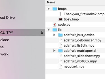 You'll also need to copy the following files to the CIRCUITPY drive. See the graphic at the top of the page as to filenames and where they go):