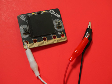 Finally, clip the NeoPixel strip's black alligator clip to the CLUE's GND pad. This is the ground connection for the NeoPixel strip.