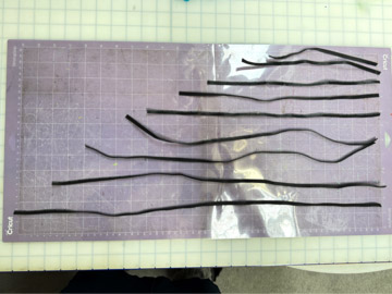 Cut 15 pieces of ribbon cable in varying lengths. Mine are 6" at the shortest and 34" at the longest, in 2" intervals.